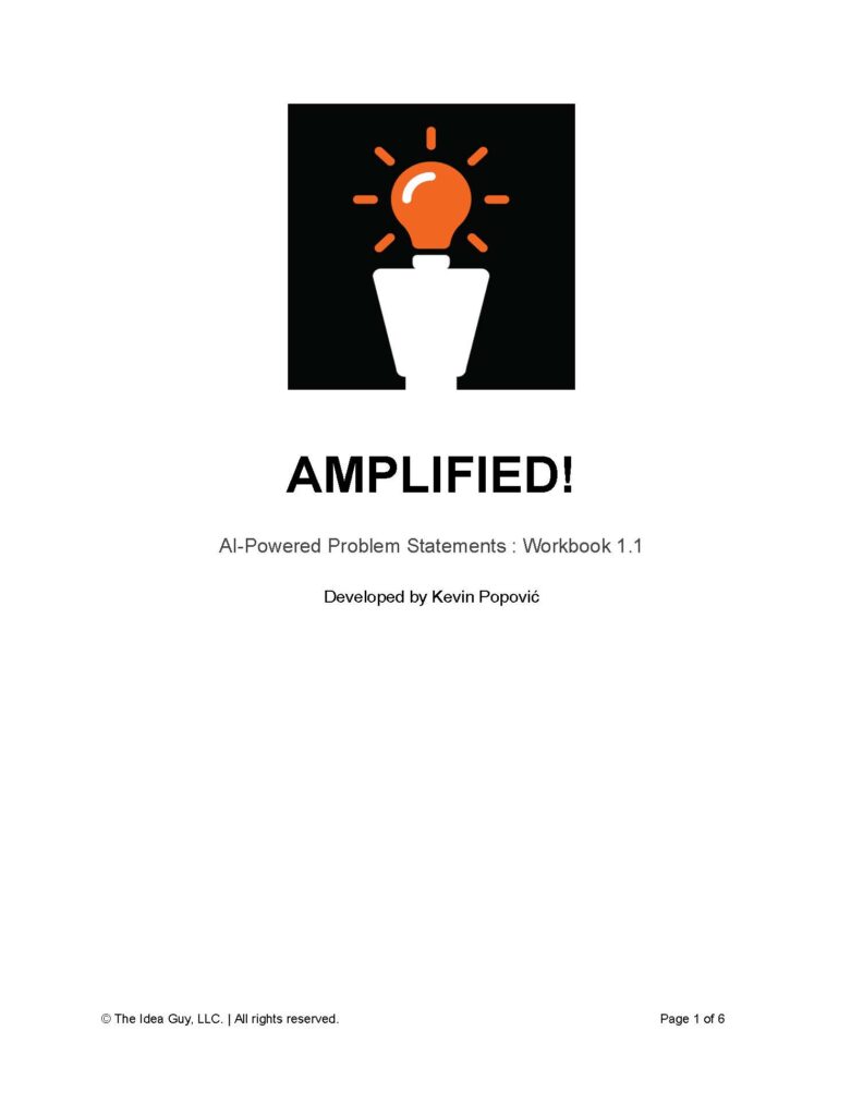 Most organizations waste energy solving the wrong problem. In this hands-on workshop, innovation expert Kevin Popović, The Idea Guy®, introduces AMPLIFIED!™ — AI-Powered Problem Statements, a fast, effective process for reframing challenges into actionable problem statements.