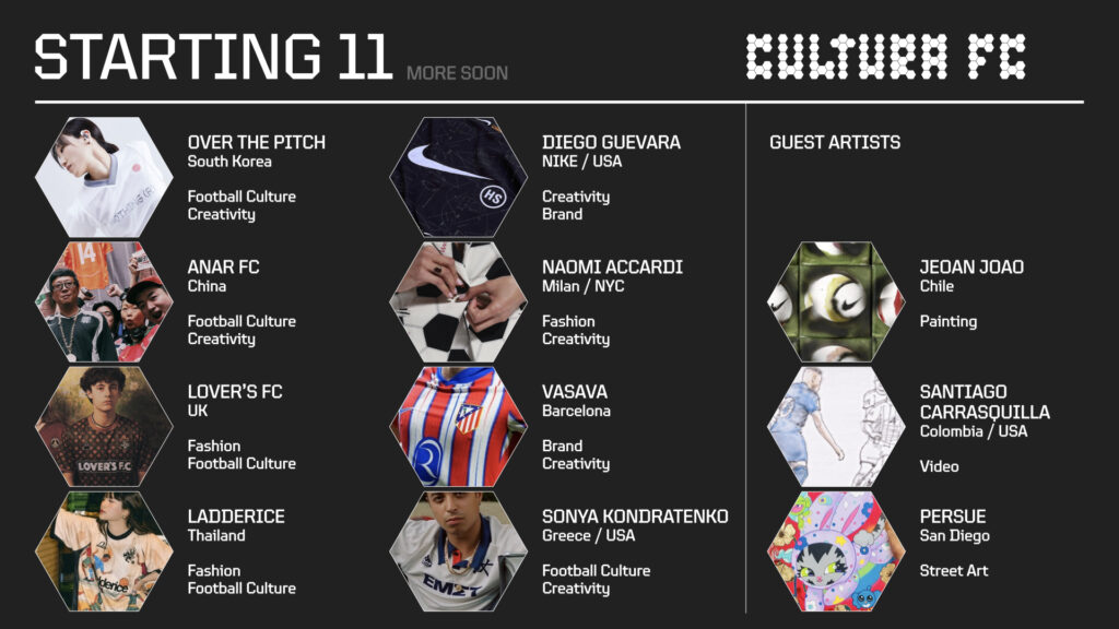 With 5 billion fans and counting, football is more than a game — it’s pop culture, a creative movement. Independent projects are bridging the sport with creativity like never before, and Cultura FC arrives in America’s finest city to introduce us to the design side of football. Cultura FC will host globally known football artists, creatives, movers and shakers to provide insightful talks, activations, exhibitions, pop-ups, workshops, gatherings, & more.