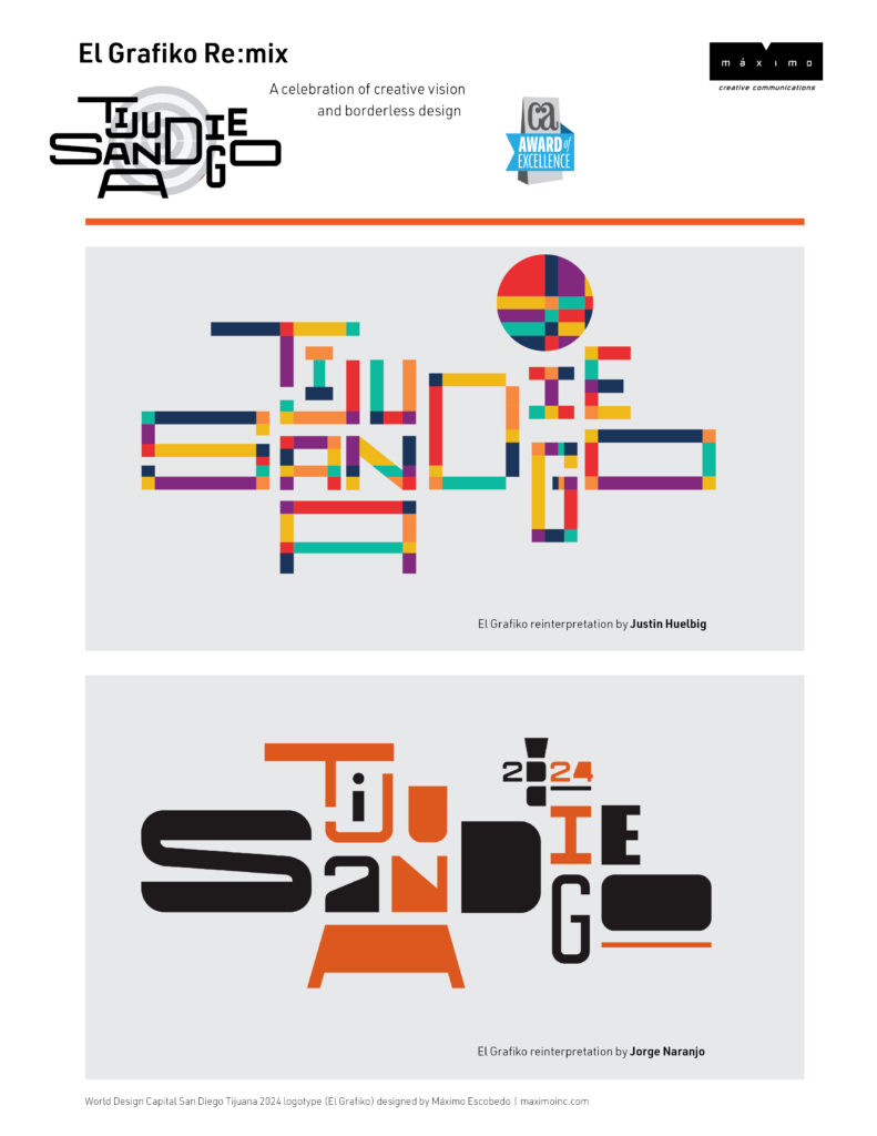 Maximo Creative Communications is a cross-disciplinary design consultancy led by Máximo Escobedo, designer of the WDC San Diego Tijuana logotype. Rooted in bilingual and bicultural practice, the studio develops brands, exhibitions, and cultural projects that fuse strategic design with layered storytelling. Maximo’s work spans civic, educational, and creative sectors, always aiming to amplify identity, dialogue, and design’s public role.
