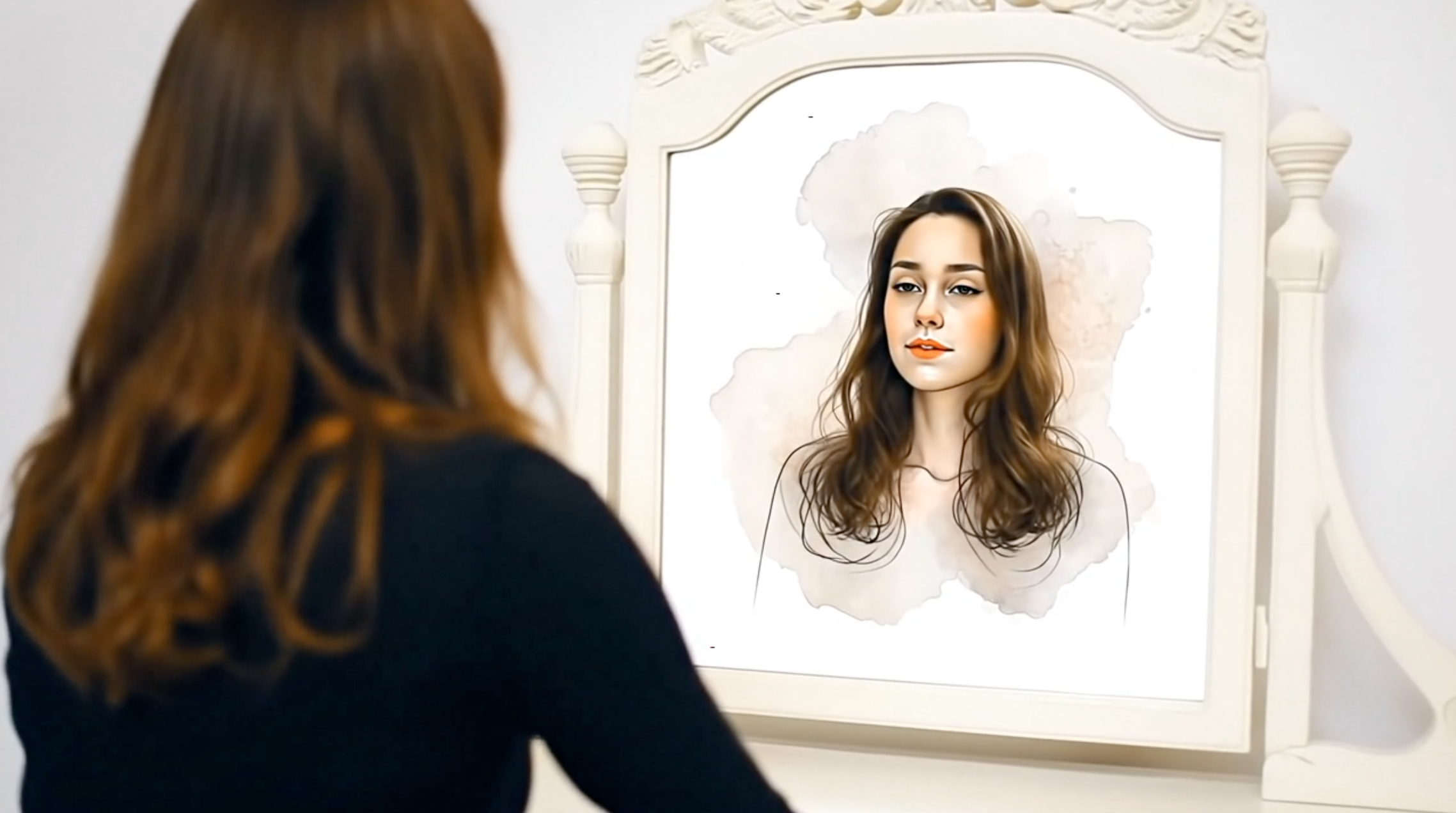 Step into a space where your reflection transforms into a fleeting work of art. This experience is a quiet journey into the heart of creativity, inviting you to see yourself through a new lens.